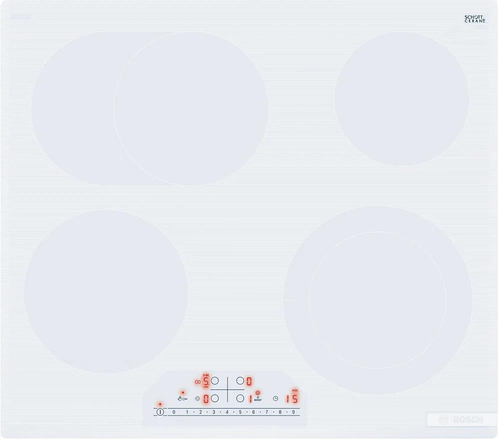Электрическая варочная панель PKN652FP2E генерирует нагрев непосредственно в области дна посуды, не раскаляя рабочую поверхность. О плиту практически невозможно обжечься, а не выключенная конфорка не доставит неприятностей, если с неё будет убрана посуда — сама по себе панель греться не станет.