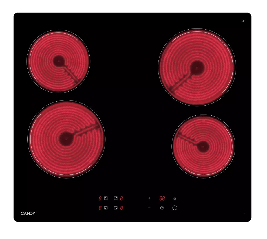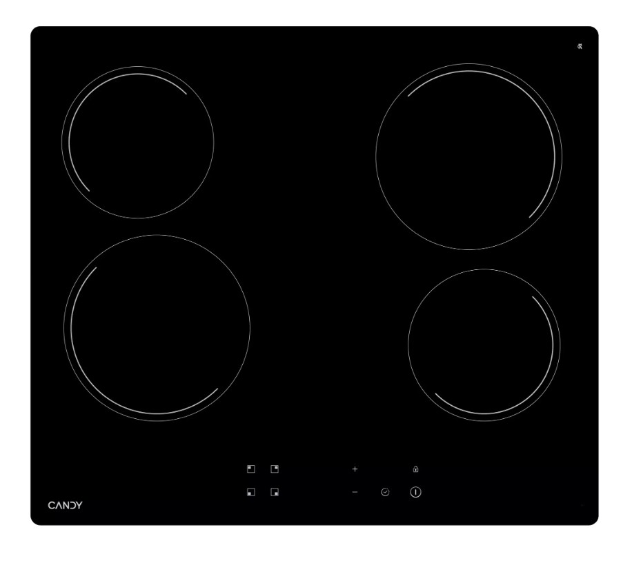 Candy CHXC64NB — это современная независимая электрическая варочная панель из стеклокерамики с четырьмя зонами нагрева типа Hi-Light, которые обеспечивают быстрый нагрев за несколько секунд.