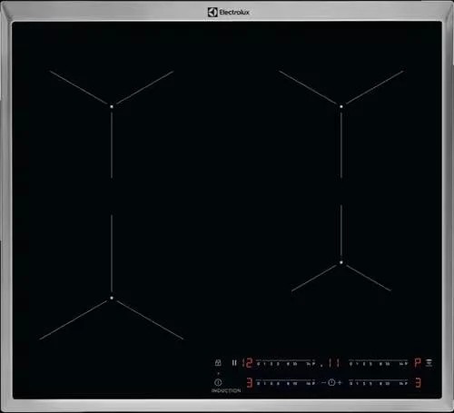 Варочная панель Electrolux EIT60443X имеет экспериментальный дизайн, который хорошо подойдёт к современному интерьеру. Чёрная стеклокерамика удобна в эксплуатации, в том числе и в уходе. Индукционный нагрев показывает высокий КПД, поскольку вихревые токи передают тепло от ТЭНа сразу к дну посуды, а не на поверхность. Распознавание посуды помогает убедиться, что утварь подходит для индукционного использования, и кроме того, оно активирует сразу ту конфорку, на которую установили кастрюлю или сковородку.