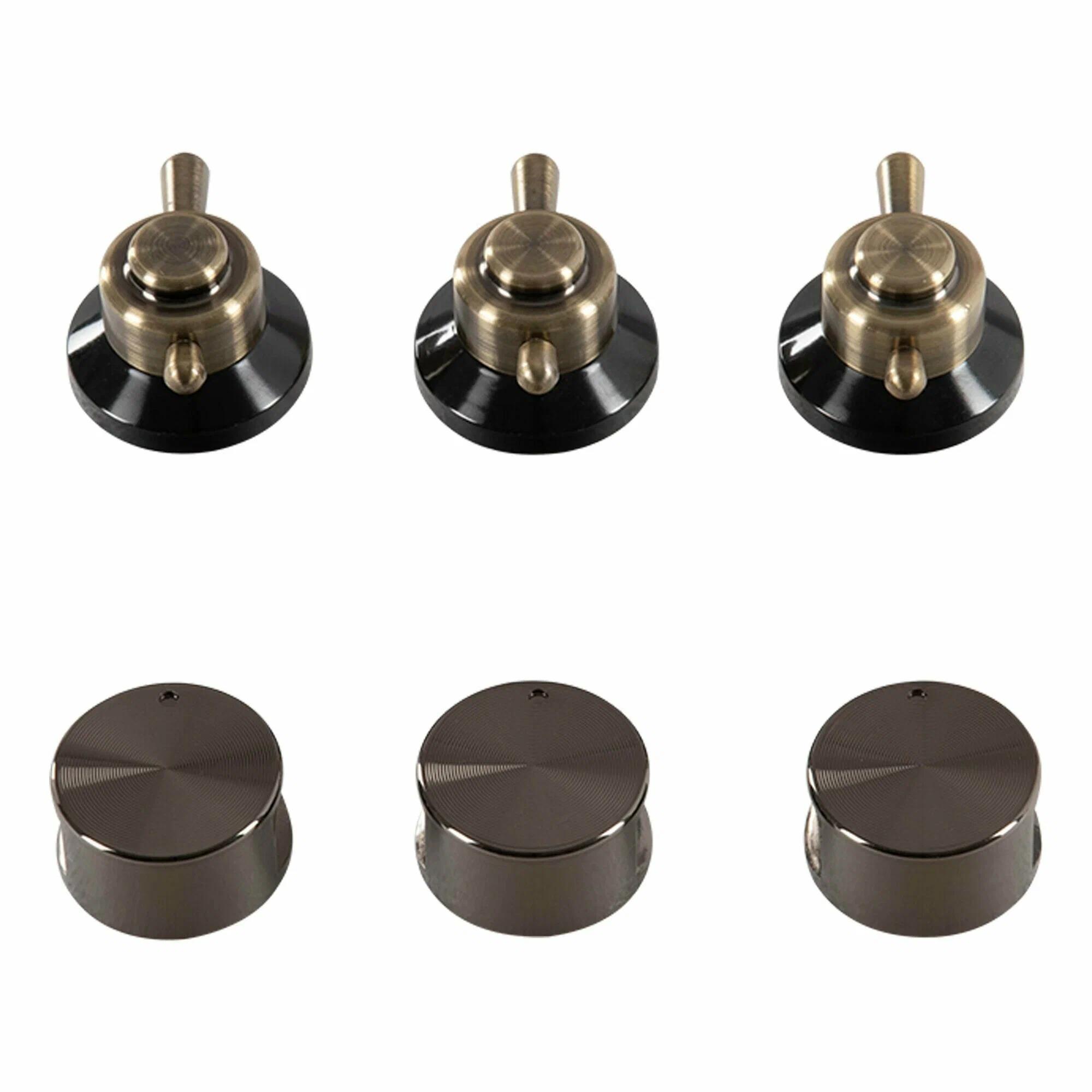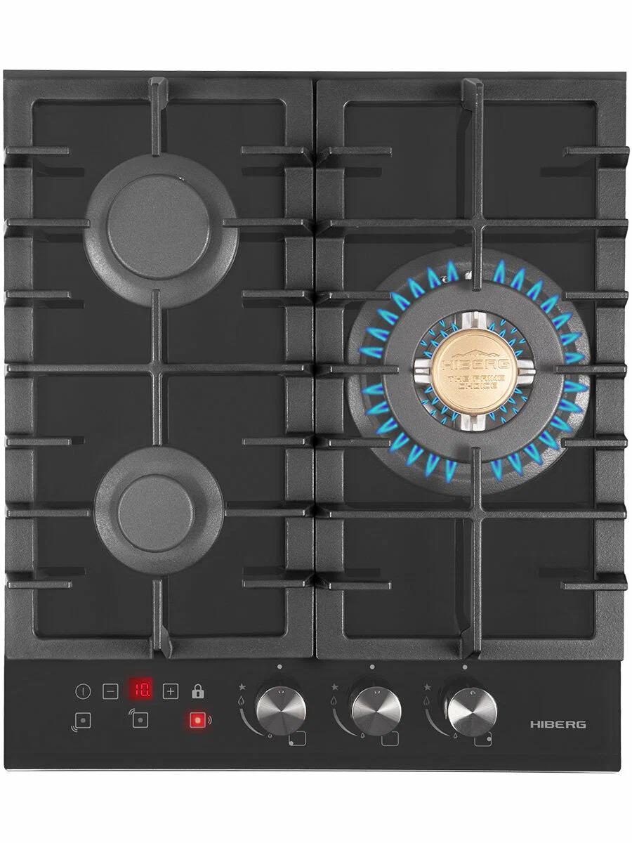 Встраиваемая газовая варочная поверхность HIBERG VM 4535 B из закаленного стекла в черном цвете, оснащена 3 конфорками и функциями: автоматический «электророзжиг», «газ-контроль» и сенсорный таймер отключения. В комплект варочной поверхности входит дополнительный комплект ручек регуляторов в ретро-стиле.
