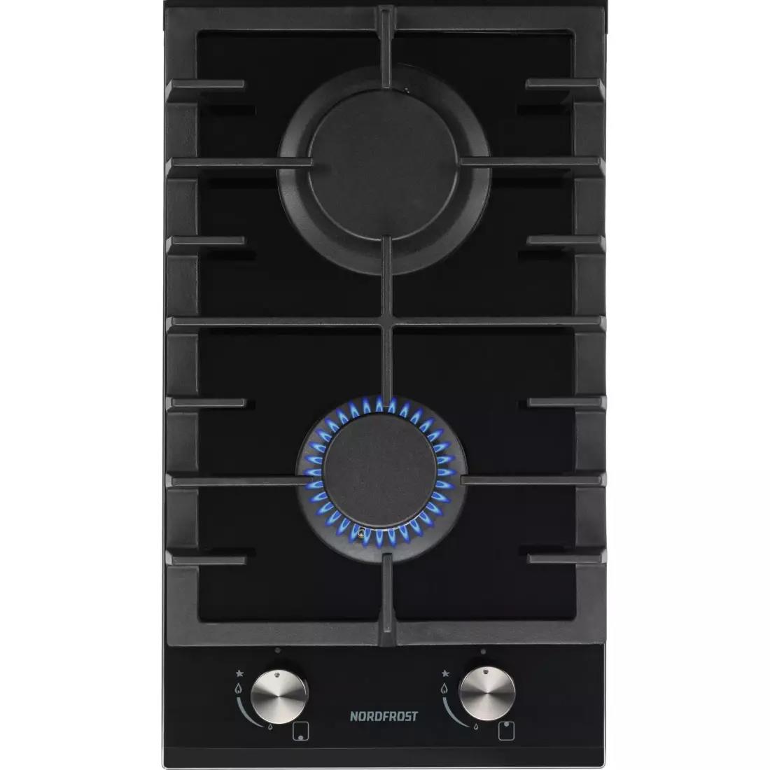 Газовая варочная поверхность NORDFROST HM 3023 B выполнена из закаленного стекла в черном цвете, оснащена двумя конфорками с газовым подключением, функцией газ-контроль и автоматическим электророзжигом от ручек.