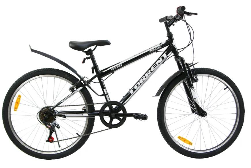 Велосипед TORRENT Magic - это горный велосипед, предназначенный для подростков и взрослых с ростом до 155 см. Он подходит для езды по городским велодорожкам, пересеченной местности, а также для сельских и загородных прогулок. Рама велосипеда выполнена из стали, что обеспечивает прочность и долговечность конструкции. Семискоростная система позволяет перемещаться по дорогам со сложным рельефом, включая ямы, горки и пологие спуски. Комфортность езды обеспечивается за счет мощного переднего амортизатора, который гасит толчки и вибрации при столкновении колес с препятствиями. Ободья колес двойные, декорированные в черный цвет, и оснащены шинами со «злым» рисунком протектора, адаптированными для езды по грунтовым дорогам и дорогам с твердым покрытием. Руль велосипеда имеет ширину 60 см и оснащен логотипами. Передний и задний тормоз рычажный «V-brake» обеспечивает надежное торможение. Сиденье средней мягкости регулируется по высоте с помощью ручного зажима «Quick release».