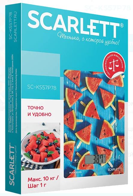 Весы кухонные Scarlett SC-KS57P78 макс.вес:10кг арбуз (рисунок, красный)