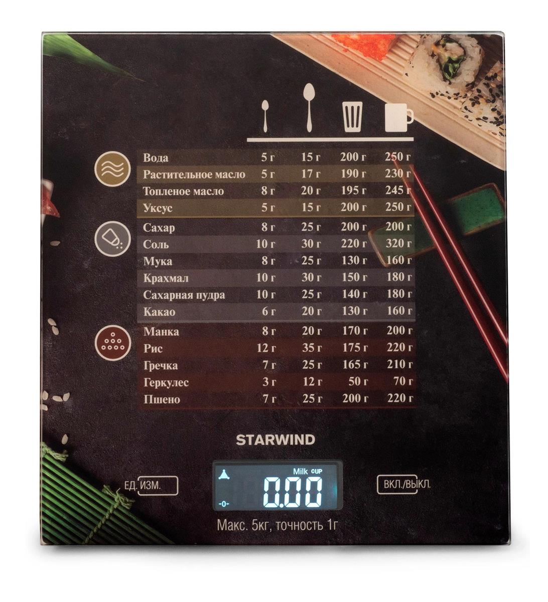 Весы кухонные STARWIND SSK3377 макс.вес:5кг (рисунок)