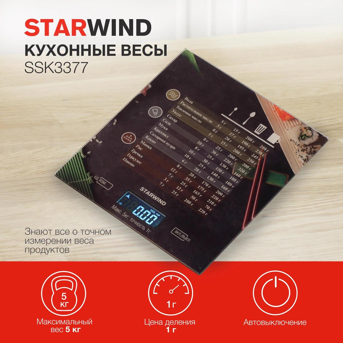 Весы кухонные STARWIND SSK3377 макс.вес:5кг (рисунок) - Интернет-магазин ОЛИМП: бытовая техника, электроника, товары для дома и др.