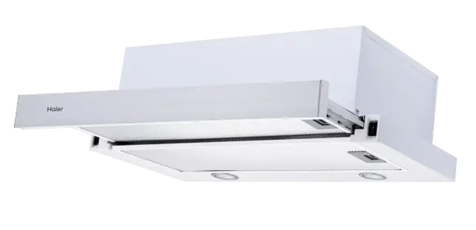 Телескопическая вытяжка Haier HVX-T671W на кухне будет малозаметна, ведь она полностью встраивается в мебельный профиль. Зато её характеристики впечатляют — производительность по очистке до 700 м³ в час. Вытяжка способна работать в режиме полного отвода загрязнённого воздуха или в режиме рециркуляции — воздух в этом случае проходит тщательную очистку от жировых загрязнений и запахов и возвращается в помещение. Для максимально эффективной работы просто потяните на себя выдвижную панель на телескопических направляющих, а после готовки задвиньте её обратно. У модели классическое кнопочное управление — легко выбрать режим работы или включить светодиодное освещение зоны готовки. Светодиоды яркие, но при этом экономичные и прослужат дольше обычных ламп накаливания. Вытяжка Haier HVX-T671W великолепно справляется со своей главной задачей — быстро и качественно очищает воздух на кухне.