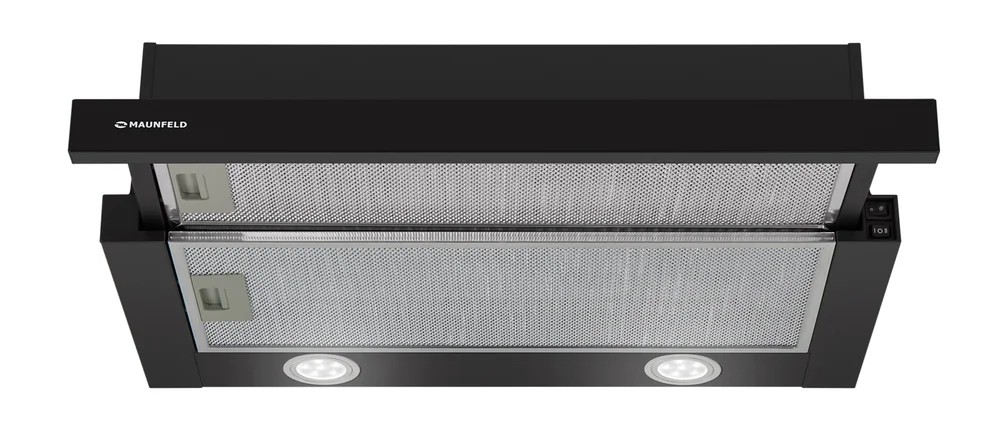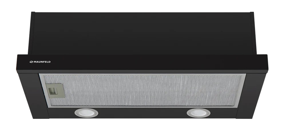 Вытяжка Maunfeld VS LIGHT 60 — встраиваемая модель, выполненная в черном цвете, которая устанавливается в шкаф над поверхностью плиты, сохраняя пространство на кухне и придавая ей стильный и современный вид.